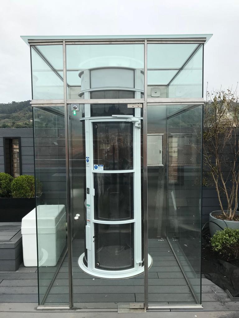 When installing a home elevator by PVE in an exterior application, often an enclosure is needed to build around the elevator to fully protect it from the elements. While they are often installed in rooftop decks or outside the home, these self-supporting lifts need to be fully enclosed and protected from the elements to ensure the longevity of the equipment. The residential elevator should not be susceptible to the elements as over time this could potentially damage the long-term operation of the lift if it is not properly maintained. For past installations, homeowners have built enclosures using glass to take advantage of the panoramic visibility offered by these innovative elevators.